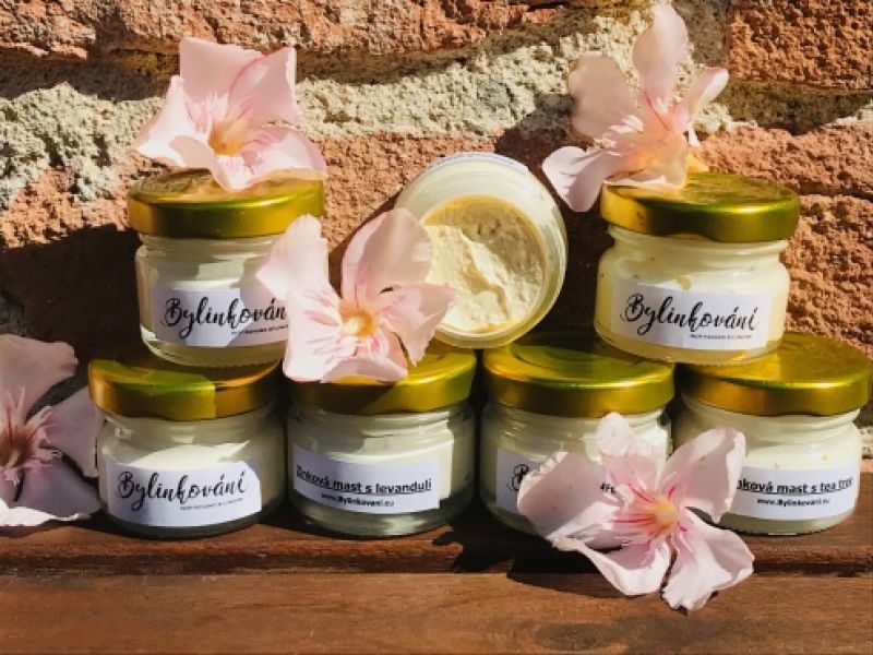 Složení masti: macerát měsíčku v bambuckém másle, levandulový olejový macerát, panthenol, oxid zinku,vče...