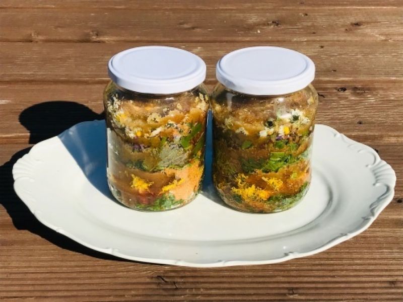 Použila jsem tentokrát bylinky: pampeliška, sedmikráska, jitrocel, kopřiva a popenec